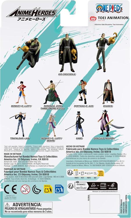 Anime Heroes The One Piece crocodile captures the iconic villain in the 16.5 cm Anime Heroes line with detailed sculpting and multiple points of articulation for dynamic posing and display