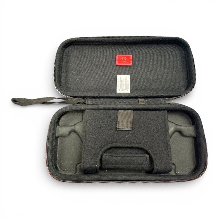 Viaja con estilo llevando lo esencial gracias a esta funda de transporte negra para Nintendo Switch.