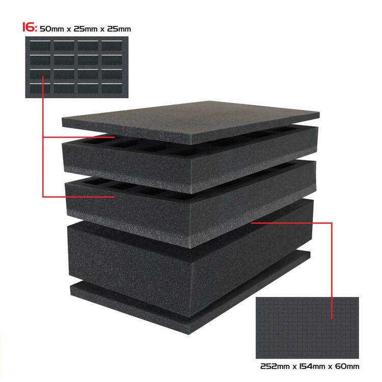 MINIATUURKAZERNE – Berg je verzameling spelerspersonages, niet-spelers en monsters op in 3 ingebouwde schuimplateaus: een plateau met 16 vakken voor 28 mm figuurtjes, een plateau met 8 vakken voor middelgrote figuurtjes en een aanpasbaar schuimplateau.