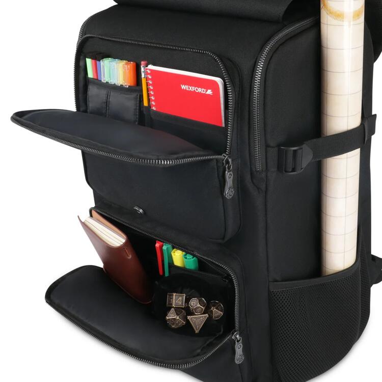 Het is de ultieme draag- en organiseertas voor je rollenspellen. Spelleiders hebben een opbergruimte nodig die groot genoeg is om boeken, ordners, spelleidersschermen, figuurtjes, een laptop of tablet en nog veel meer accessoires en versnaperingen mee te nemen.