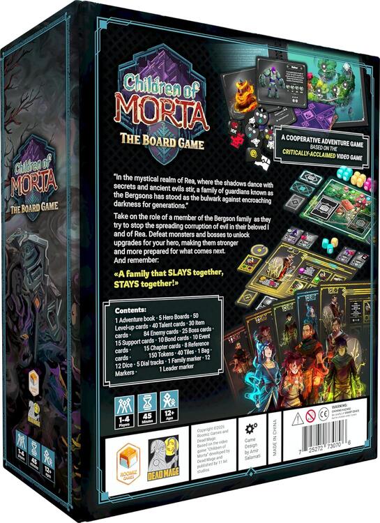 Children of Morta : Le Jeu de Plateau est un jeu d'aventure coopératif doté d'un mécanisme unique de construction de sac partagé, d'une évolution permanente des personnages, d'une importance particulière accordée à la famille, de tours simultanés et d'une coopération interconnectée. Une famille s'unit contre la corruption qui ravage leurs terres bien-aimées ! Une famille qui combat ensemble reste unie !