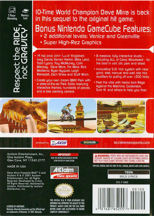 Le système de figures ouvert de Dave Mirra Freestyle BMX 2 propose plus de 1 500 figures et mouvements signature, dont beaucoup ont été réalisés à partir de captures de mouvement de Mirra lui-même.