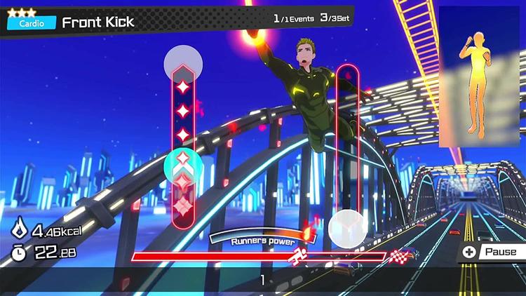 Routines amusantes ! - Lorsque le joueur répond aux invites d'entraînement, il aide son coureur à travers une performance flashy et divertissante. C'est amusant à jouer et à regarder ! Jouer avec des amis! - Fitness Circuit prend en charge le multijoueur en ligne à 4 joueurs.