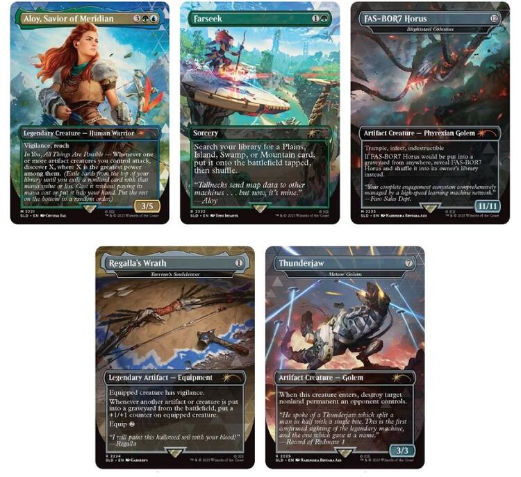 Avec ses alliés, elle s'est battue pour un avenir meilleur, et maintenant elle se bat avec vous dans le cadre de votre deck Magic: The Gathering En plus d'une toute nouvelle carte magique mettant en vedette le plus grand chasseur de machines au monde, la goutte Secret Lair x Horizon : Into the Forbidden West dispose également des machines colossales frappantes pour lesquelles la série est connue.
