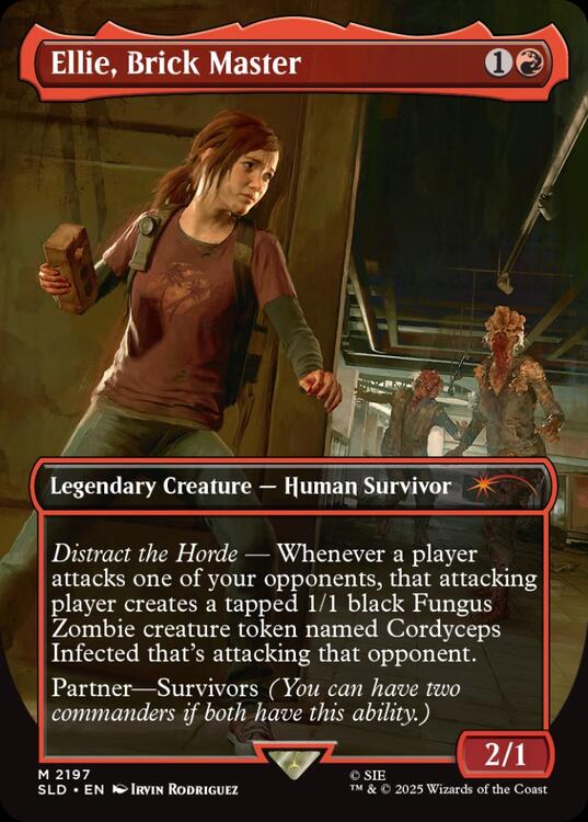 Maintenant, la dernière paire debout est arrivée à Magic: The Gathering avec deux nouvelles cartes Magic — exclusives à cette goutte Secret Lair — conçues pour encapsuler parfaitement ces icônes de jeu, plus un aperçu de deux moments clés du jeu, et un jeton Cordyceps Infected sur lequel une brique peut être lancée.