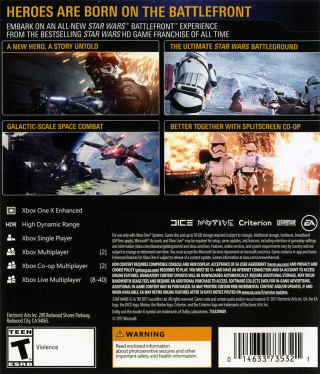 Profitez d'une expérience multijoueur Star Wars riche et pleine de vie avec des cartes englobant les trois générations : préquelle, classique et nouvelle trilogie. Personnalisez et améliorez vos héros, vos vaisseaux et vos soldats, chacun disposant de pouvoirs uniques à utiliser en combat.