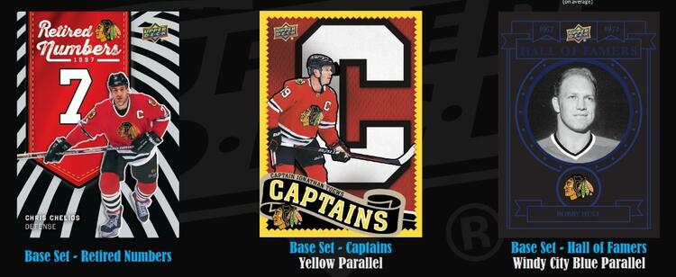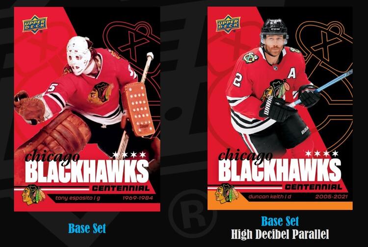 Série de base de 100 cartes mettant en vedette les joueurs les plus emblématiques des Blackhawks au cours du dernier siècle.
